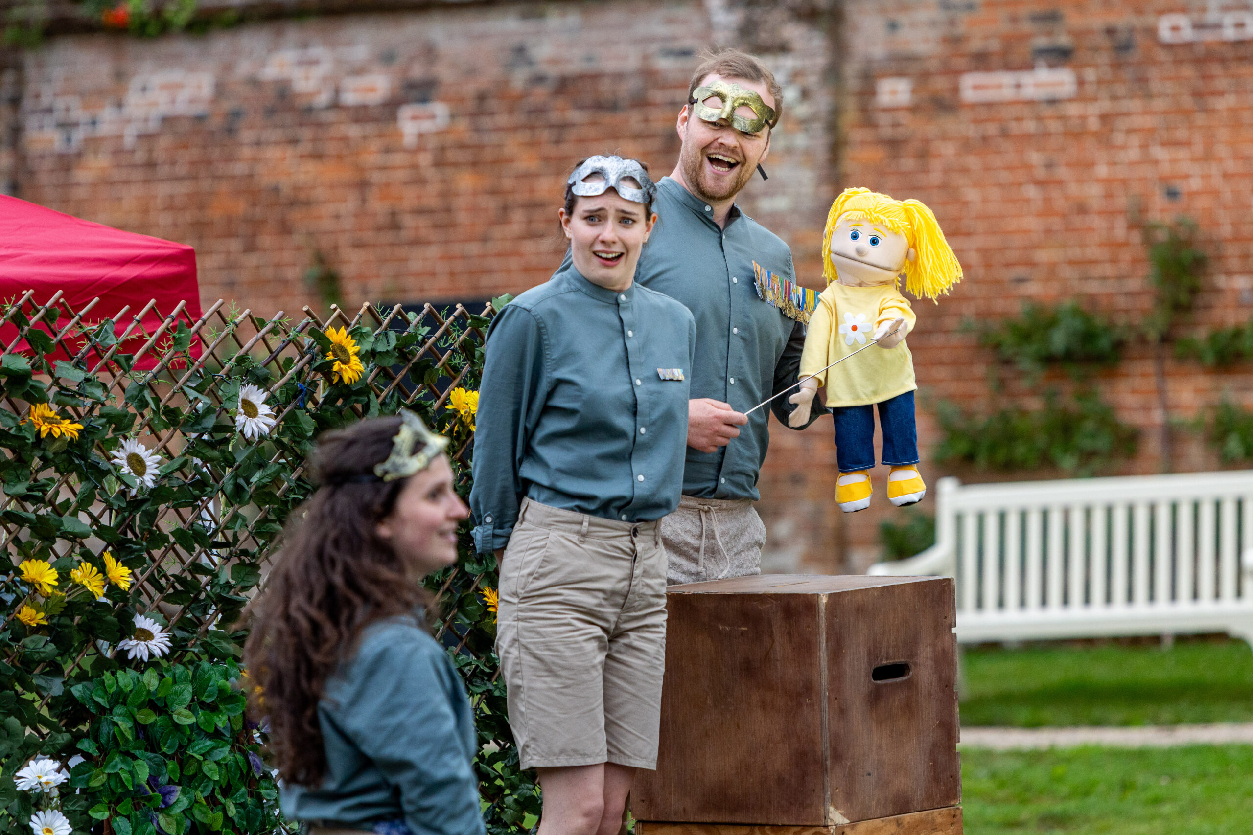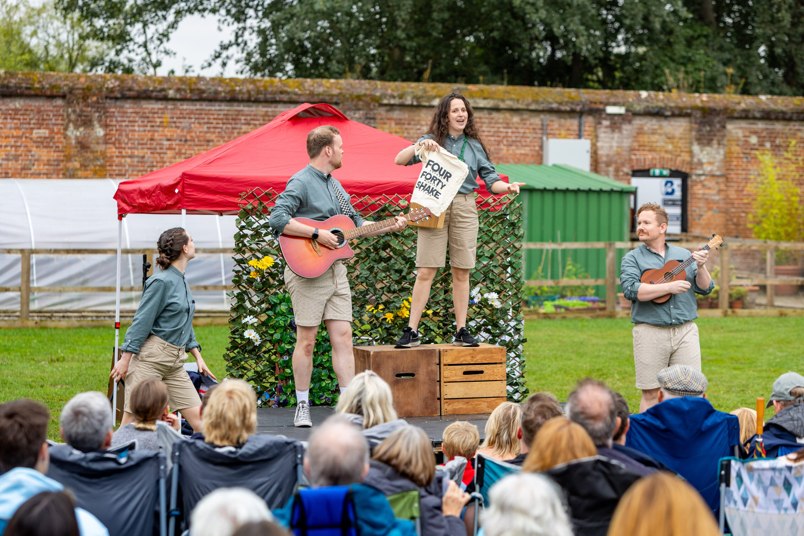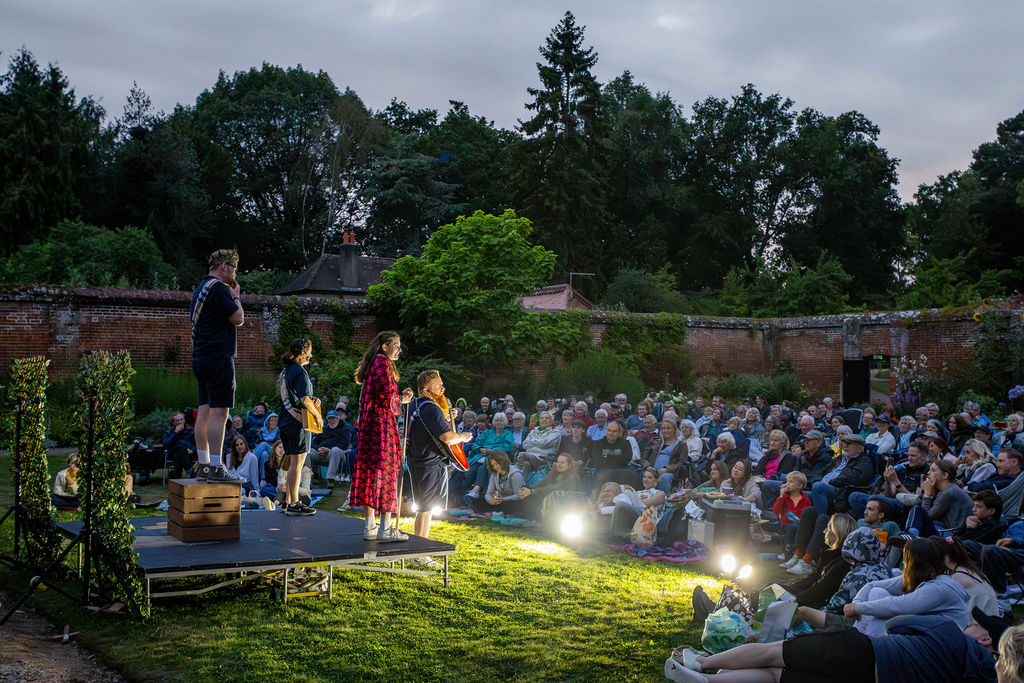 This is an open air production so please dress according to the weather. Umbrellas are not permitted as they obstruct the view of other patrons. We recommend waterproofs, sunscreen, and plenty of drinking water as appropriate.
