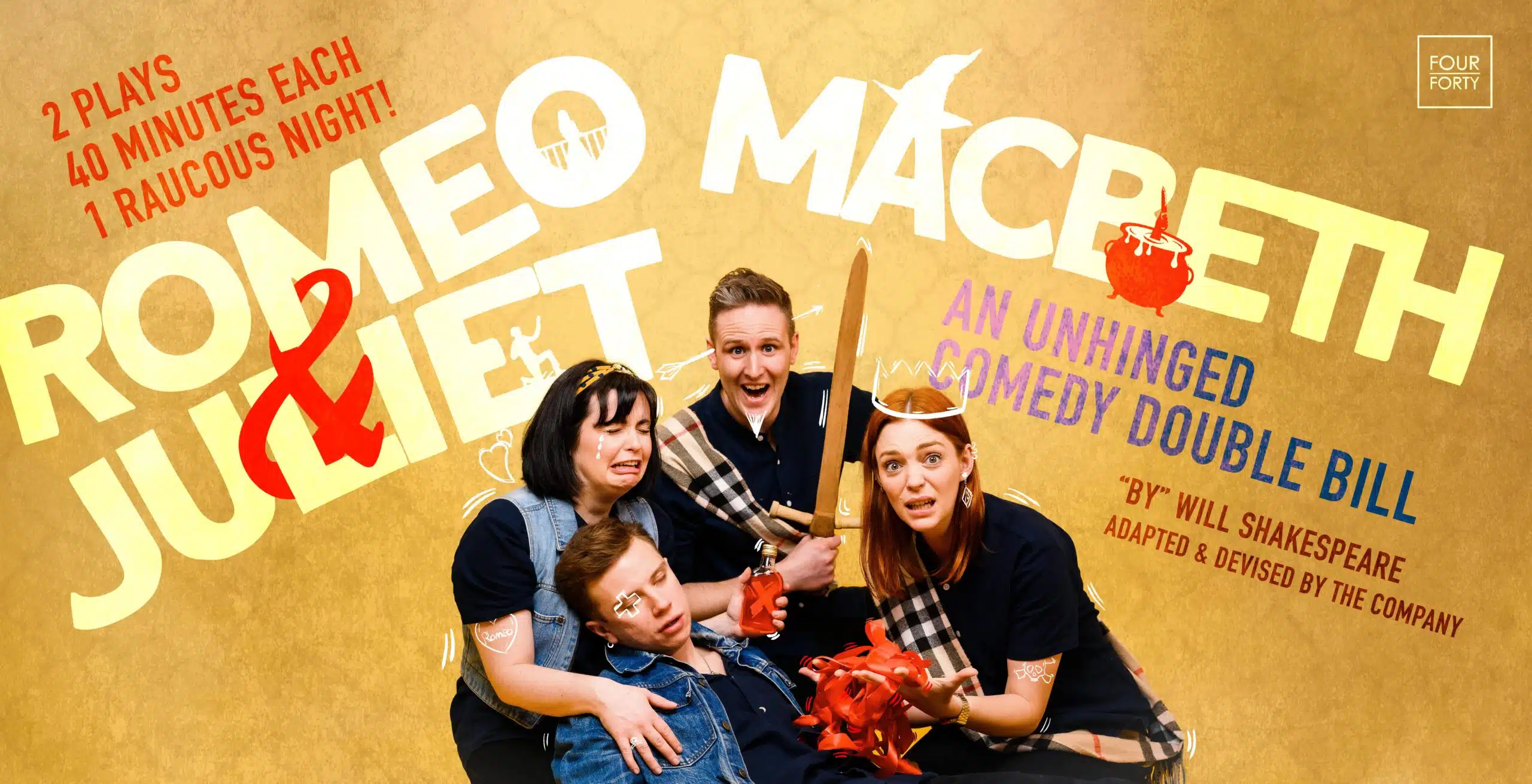 440 Theatre are back with their ‘Double Bill’ for 2023. Two of Shakespeare’s Greatest Tragedies transformed into outrageous, fall-on-the-floor comedies. You might have seen Shakespeare before but never like this! Four Forty have been delighting audiences up and down the country with their fast paced, in your face, hysterically funny productions. Offering an alternative take on some of the worlds most famous plays, their inimitable style and charisma has set them apart as one of the most hungry and playfully ambitious travelling troupes around.